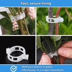 Simply open the clip, place the stem inside, and close it. In seconds, the plant is securely attached to its stake or support.